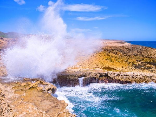 Shete Boka National Park, on Curaçao’s rugged north coast, is where the ocean meets limestone in a spectacular display of power. The park is famous for its “bokas,” natural inlets and caves where waves crash high into the air, as well as natural bridges and turtle-nesting beaches. With your own car, you can easily reach the main viewpoints such as Boka Tabla, Boka Wandomi, and Boka Pistol, and enjoy a more peaceful, uncrowded experience.